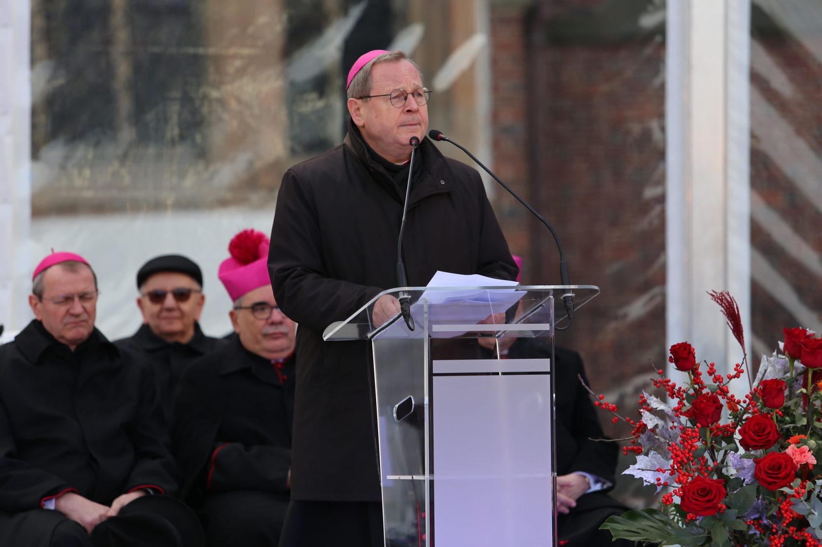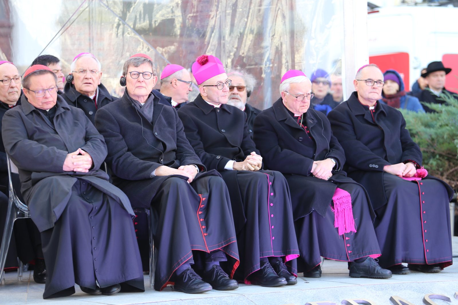 „Wracając do Wrocławia: Od lat 50. XX wieku odpowiedzialność za Kościół spoczywała na bp. Bolesławie Kominku, chociaż dopiero po uporządkowaniu struktur kościelnych w 1972 roku mógł on zostać mianowany arcybiskupem. Jest on jednym z inicjatorów wymiany listów i głównym autorem polskiego listu, który 60 lat temu – w ostatnich dniach Soboru Watykańskiego II – został przekazany niemieckim biskupom przebywającym również w Rzymie. To właśnie jemu, późniejszemu kard. Kominkowi, poświęcony jest pomnik, przy którym dziś się zgromadziliśmy. Czcimy go również my, biskupi z Niemiec i Polski, którzy zebraliśmy się tutaj, aby upamiętnić dziedzictwo naszych poprzedników w urzędzie” – podkreślił przewodniczący Episkopatu Niemiec.