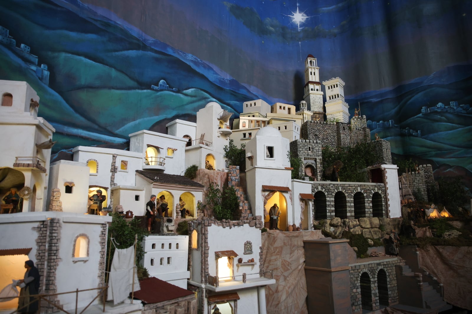 Prace przy montażu rozpoczęły się z początkiem grudnia. Między nawą główną i prezbiterium ustawiono podest, który ma około 30 m kw. Zawieszono też tło, którym jest malowana panorama o powierzchni około 90 m kw. Przypomina okolice Betlejem nocą.