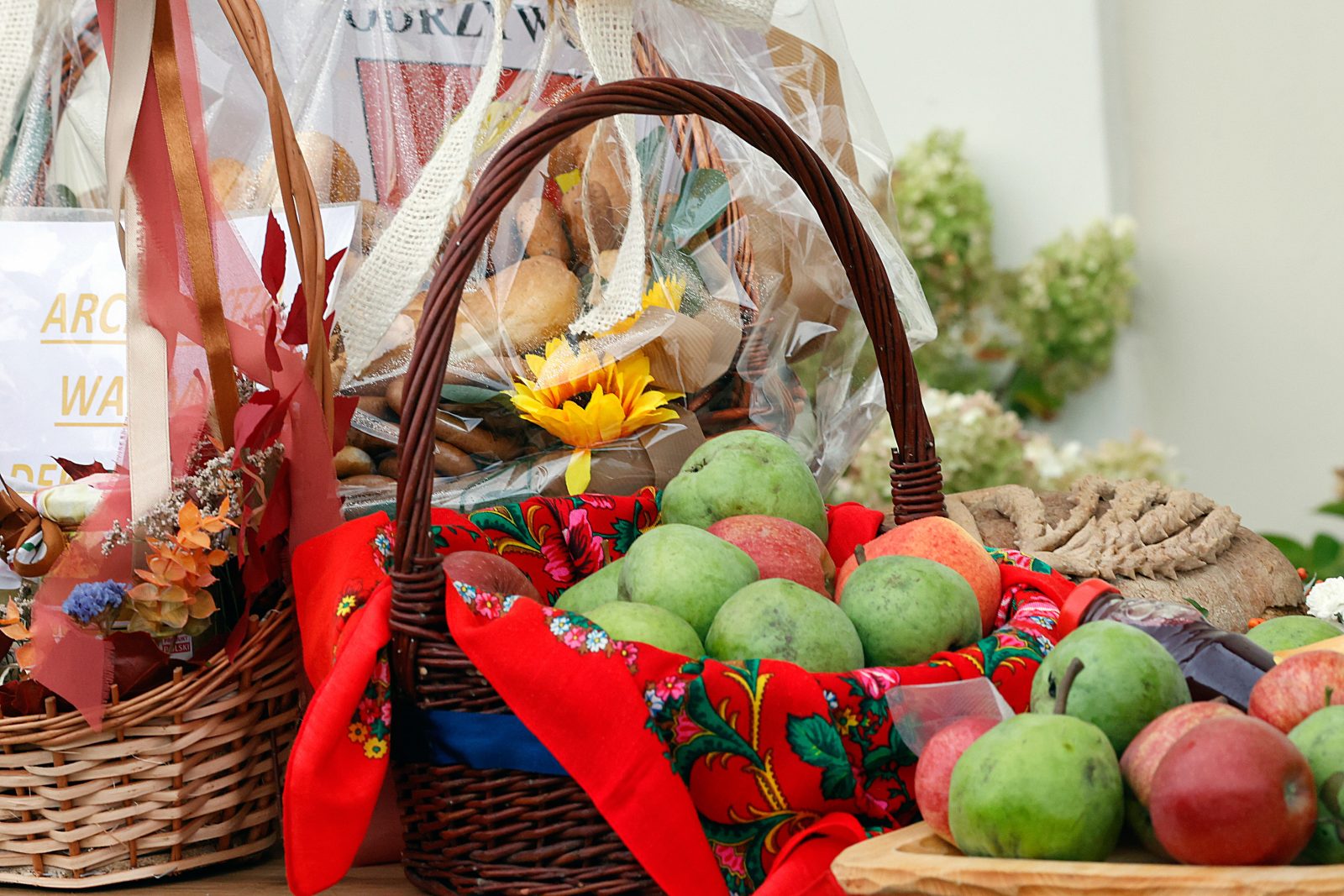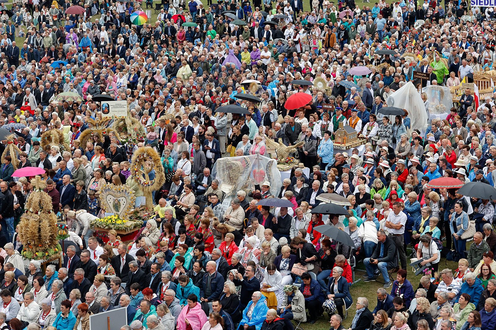 Symboliczny chleb podczas dożynkowej Mszy złożyli w darze starostowie dożynek Anna i Tomasz Śmietało z diecezji łomżyńskiej. Wyrazili radość, że mogli uczestniczyć w dożynkach. – To dla nas zaszczyt. Przywieźliśmy tutaj chleb z naszego gospodarstwa ekologicznego, z naszego żyta. To ziarno jest symbolem ciężkiej pracy i trudu. Rolnictwo nie jest proste, nie mamy wpływu na pogodę, nie wiemy co nas czeka rano, bo może być gradobicie, mróz i może tego chleba nie być – podkreślał Śmietało. Małżeństwo przyjechało z dziećmi, ponieważ jak zauważyli w dzisiejszych czasach ważne jest, aby „trzymać się swoich korzeni i podtrzymywać tożsamość”.