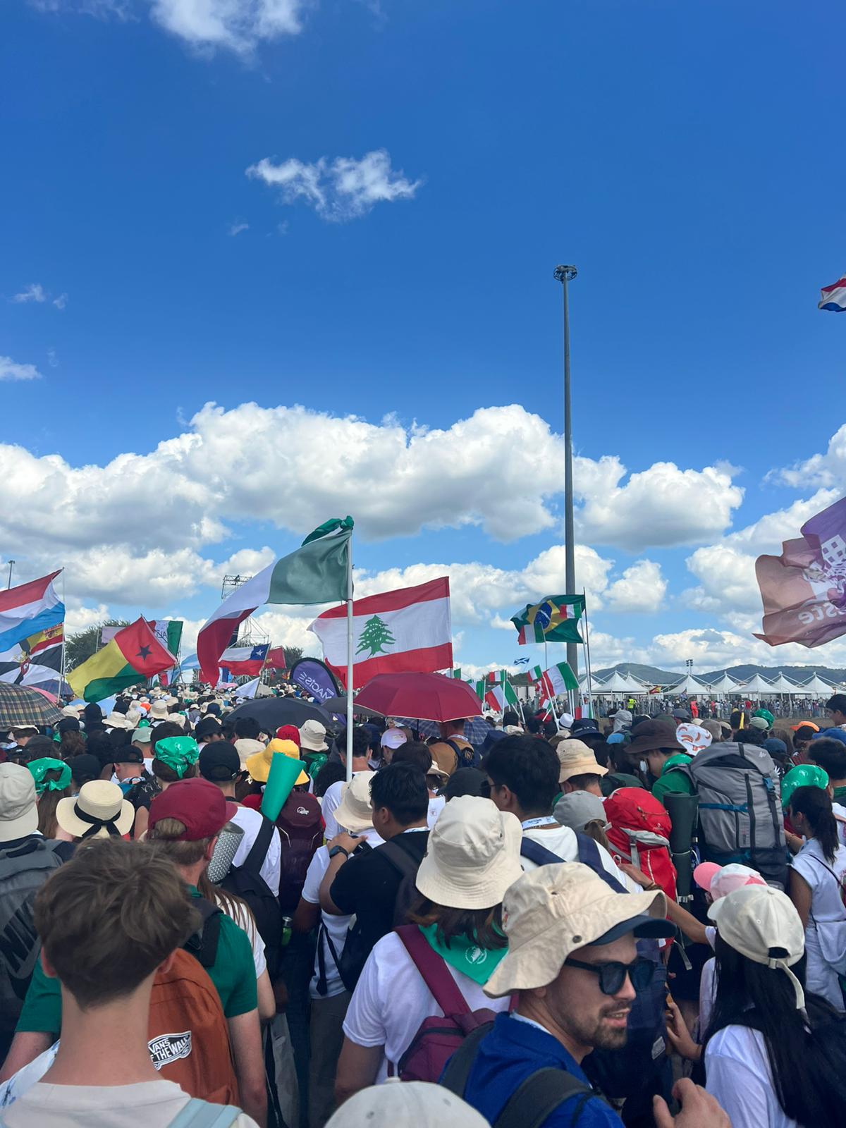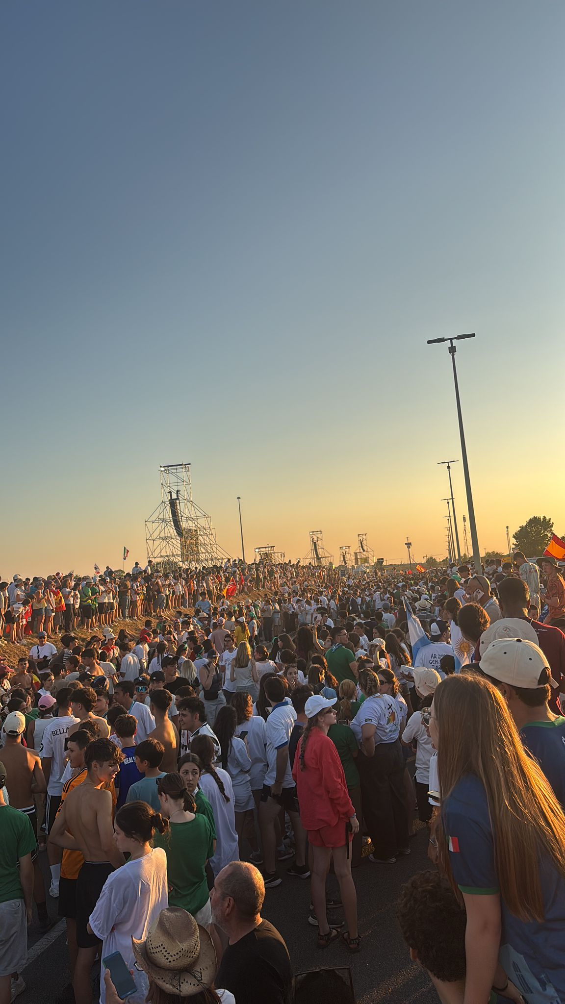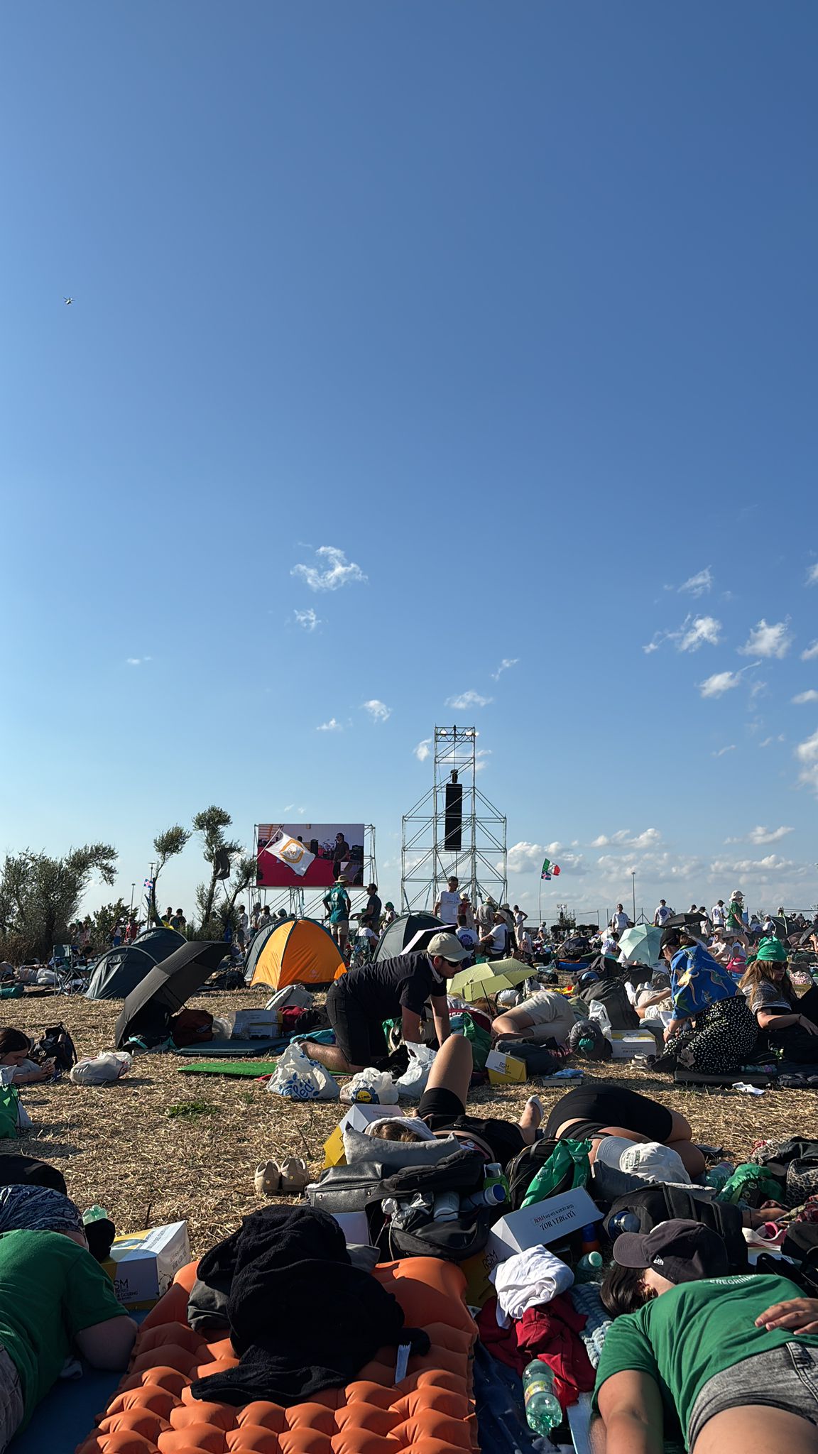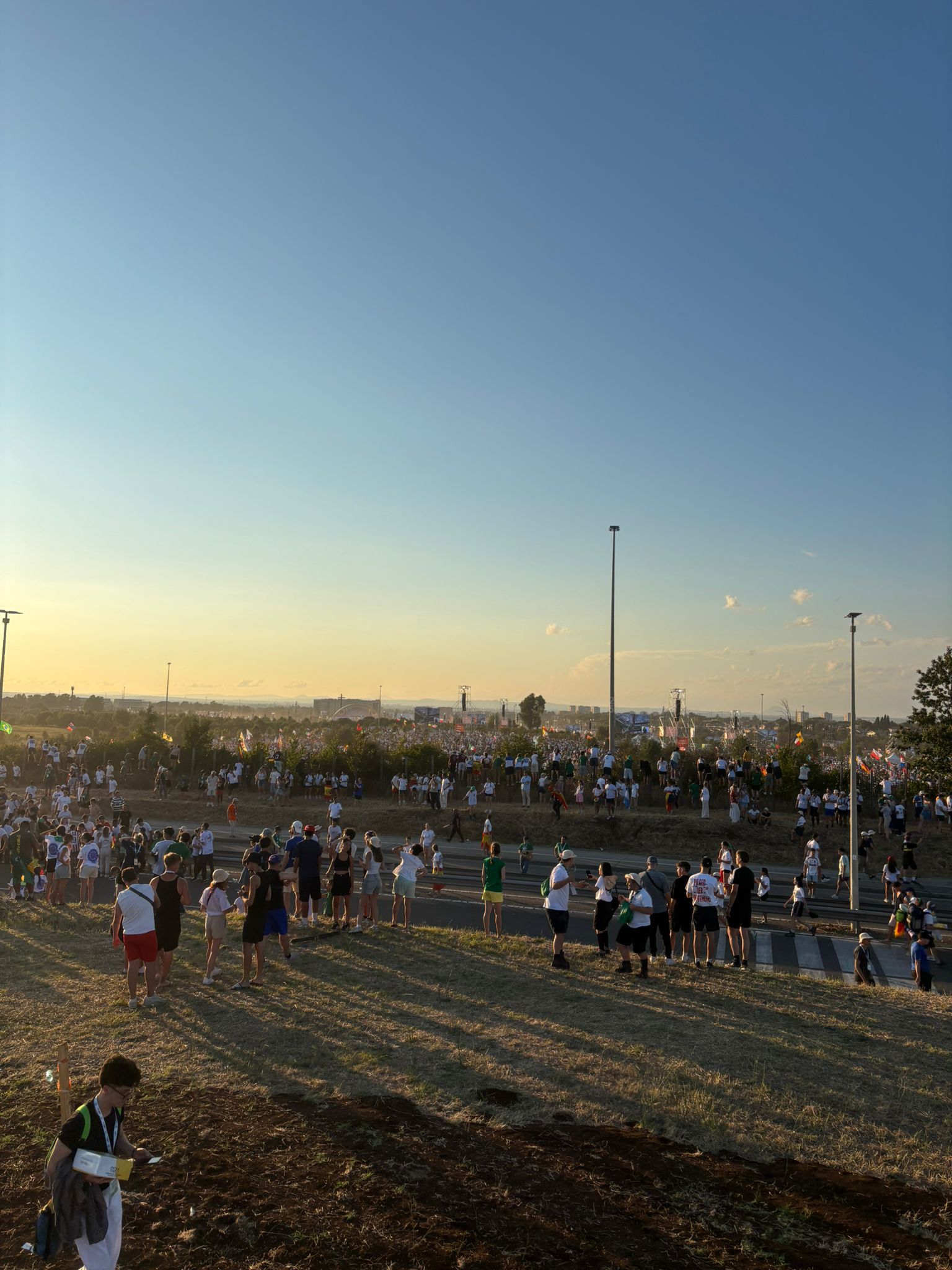 „Od rana musieliśmy sprawnie się spakować. Na godzinę 10.00 wyznaczona była zbiórka. Pożegnaliśmy się z harcerzami z ZHR, którzy spali koło nas, i wyszliśmy z terenu hal. Autokarem pojechaliśmy na pobliską stację kolejową, gdzie mieliśmy dwie godziny na zjedzenie śniadania i zakupy. Później podjechaliśmy pod Tor Vergata, ale na same pola, na których odbywało się czuwanie, musieliśmy dojść pieszo. Dostaliśmy dużo wody i odebraliśmy pakiety z jedzeniem, po czym znaleźliśmy dla siebie wygodne miejsce do spania. Do godziny 19.00, kiedy zjawił się papież, towarzyszyła nam muzyka chrześcijańska. Leon XIV skierował do nas, do młodych, słowa zachęcające do odwagi w podejmowaniu decyzji i szukania szczęścia, którym jest Jezus. Czuwanie skończyło się około 22.30, ale pozostała z nami radość i muzyka”.