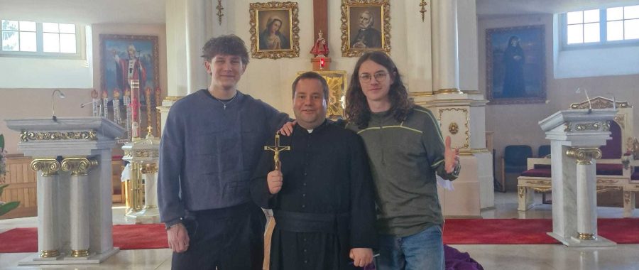O. Jan Wlazły OMI – Prowincjalny Duszpasterz Powołań Misjonarzy Oblatów wraz z Olkiem i Bartkiem związanymi ze zgromadzeniem prowadził rekolekcje dla szkół średnich w parafii pw. św. Andrzeja Boboli w Krotoszynie.