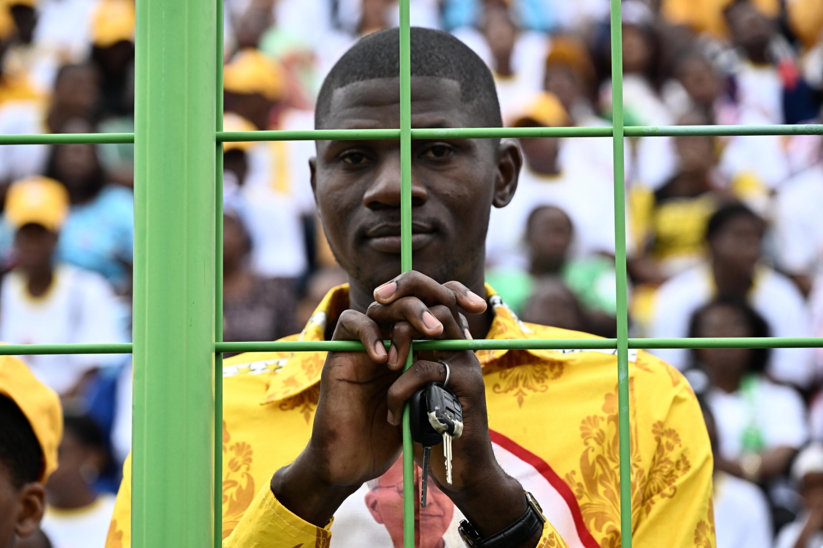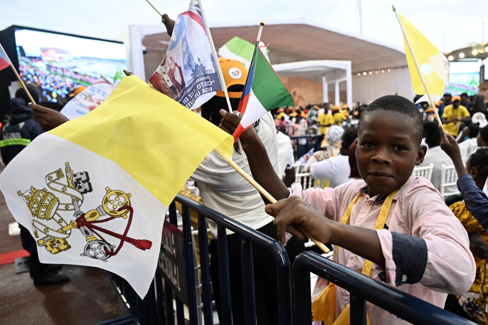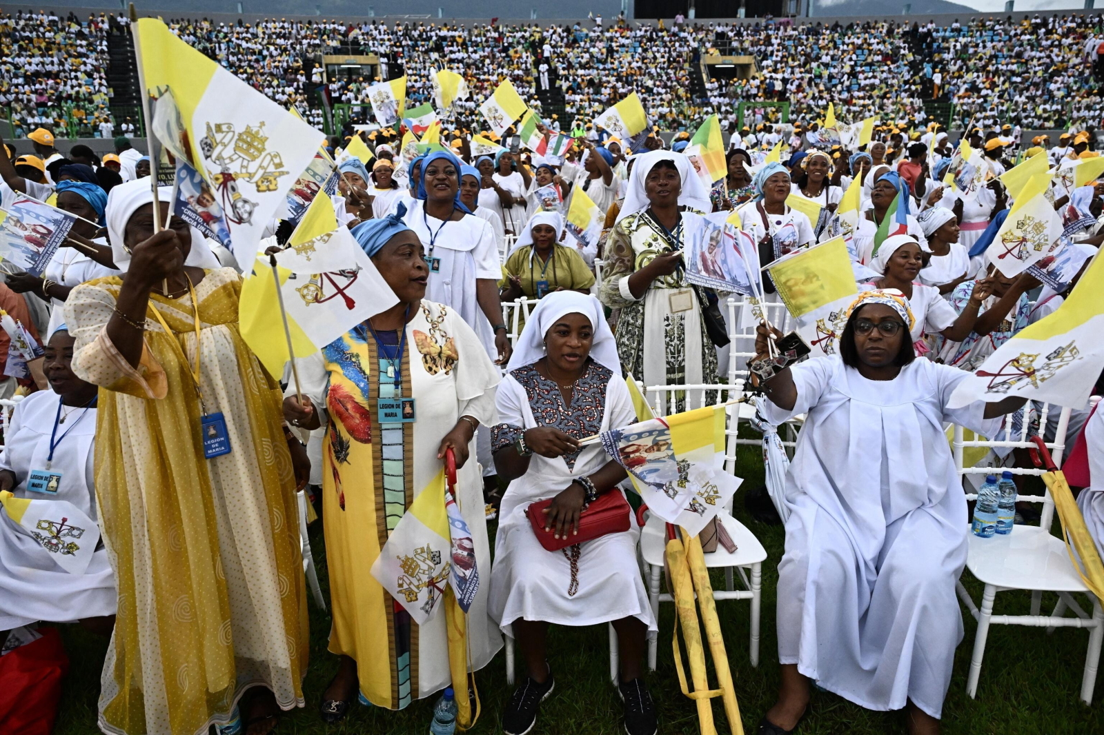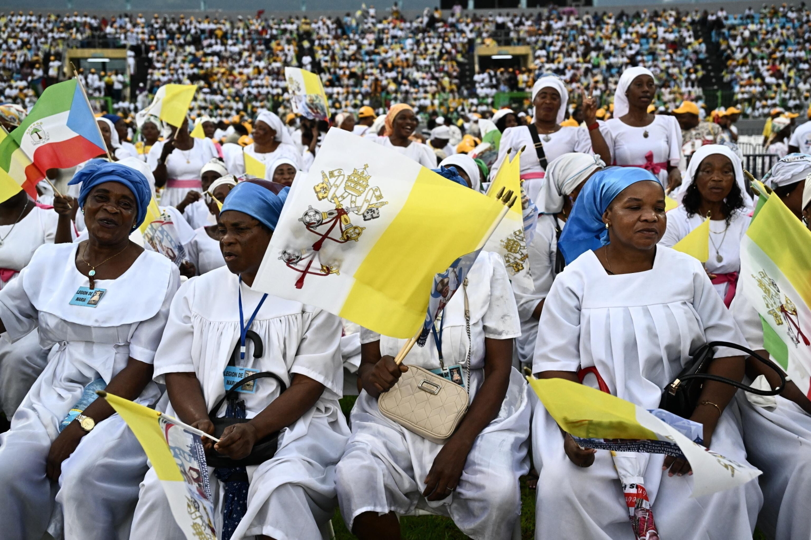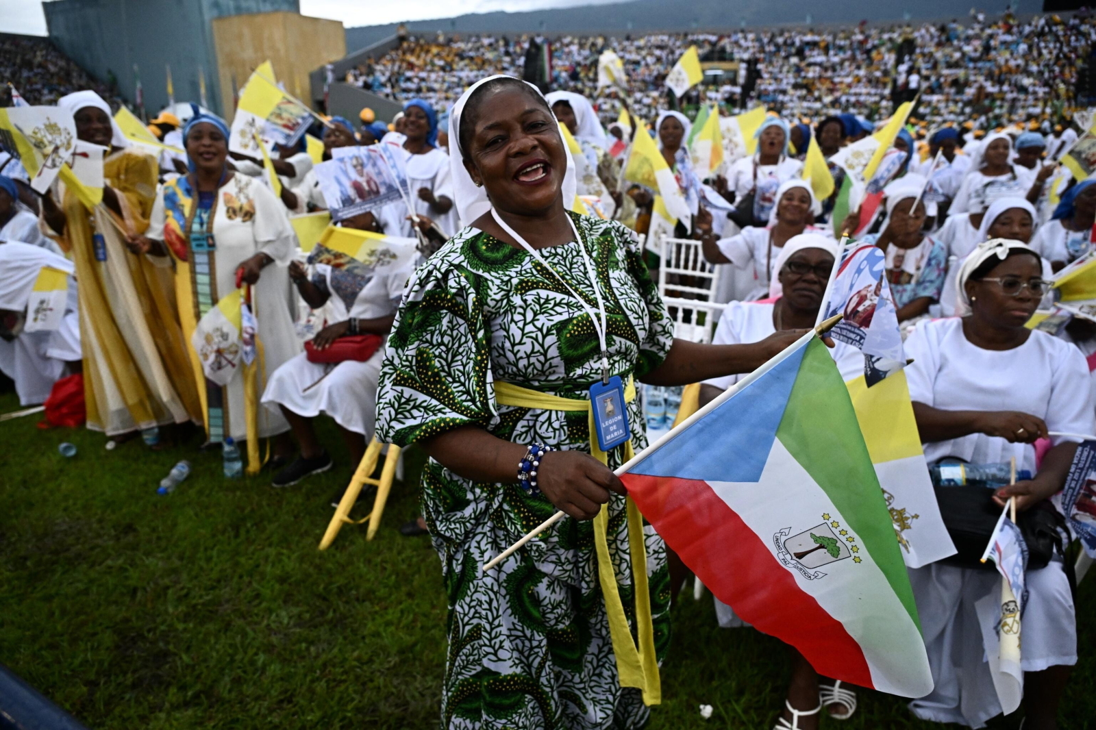 epa12908854 Pope Leo XIV (C) arrives to lead the Holy Mass in the Malabo Stadium in Malabo, Equatorial Guinea, 23 April 2026. Pope Leo XIV is on an apostolic journey to Equatorial Guinea. EPA/LUCA ZENNARO Dostawca: PAP/EPA.