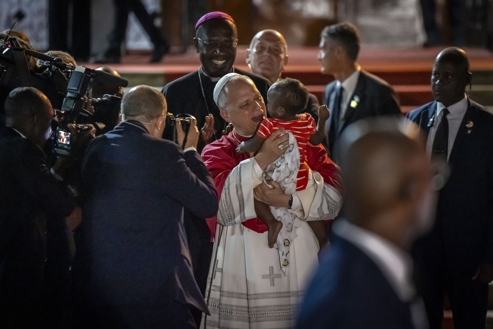 Papież wyraził wdzięczność wszystkim zaangażowanym w dzieło ewangelizacji oraz wnoszących swój wkład w postęp tego narodu „na solidnych fundamentach pojednania i pokoju”. Zachęcił duchownych do całkowitego powierzenia Panu Bogu swojego życia, a młodych, by nie lękali się ufnie odpowiedzieć na głos powołania do kapłaństwa czy też życia konsekrowanego. Wskazał, że zadaniem ludzi Kościoła jest budowanie na fundamencie Ewangelii wolnego, pojednanego pięknego i wielkiego społeczeństwa angolskiego. „Jesteście solą i światłem tej ziemi, ponieważ jesteście członkami Ciała Chrystusa i dlatego wasze gesty, słowa i czyny, odzwierciedlając Jego miłość, formują wspólnoty od wewnątrz i budują dla wieczności” – powiedział Leon XIV.