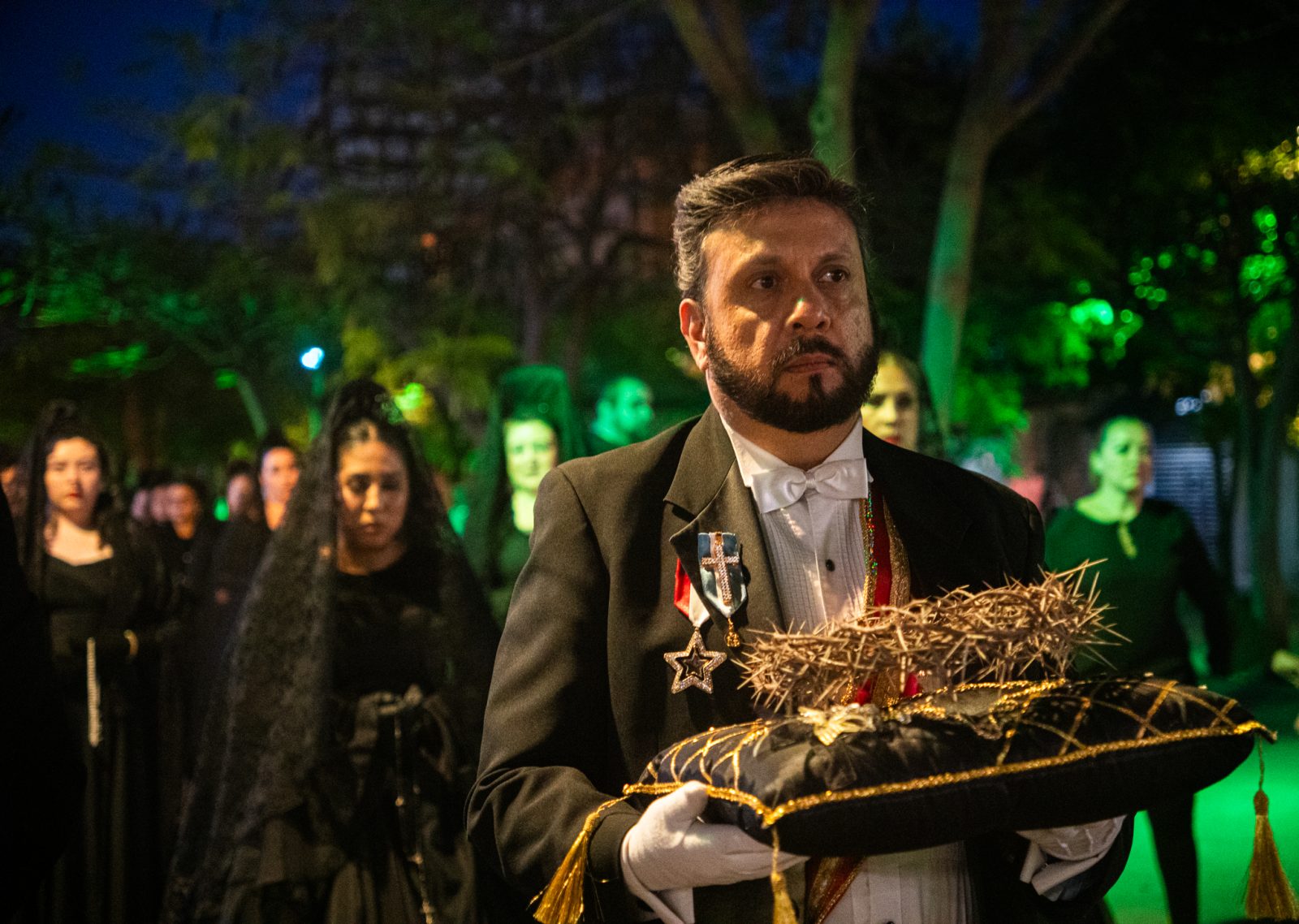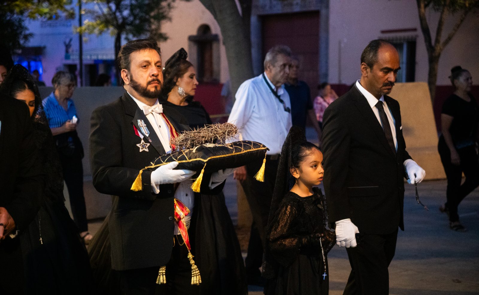 Z czterech parafii znajdujący się w centrum Guadalajary, w stanie Jalisco w Meksyku, wyruszają po liturgii Męki Pańskiej procesje ciszy. Procesja składa się z wiernych w czarnych i żałobnych strojach oraz zakapturzonych bractw pokutnych. Jeden z mężczyzn na poduszce niesie reprezentację korony cierniowej. Wszystkie cztery procesje spotykają się przy katedrze, gdzie odmawiany jest tzw. różaniec żałobny. Po nim dzieci i młodzież pod wizerunkiem Matki Bożej Bolesnej kładą białe kwiaty jako symbol kondolencji składanych Maryi po śmierci Jej syna.