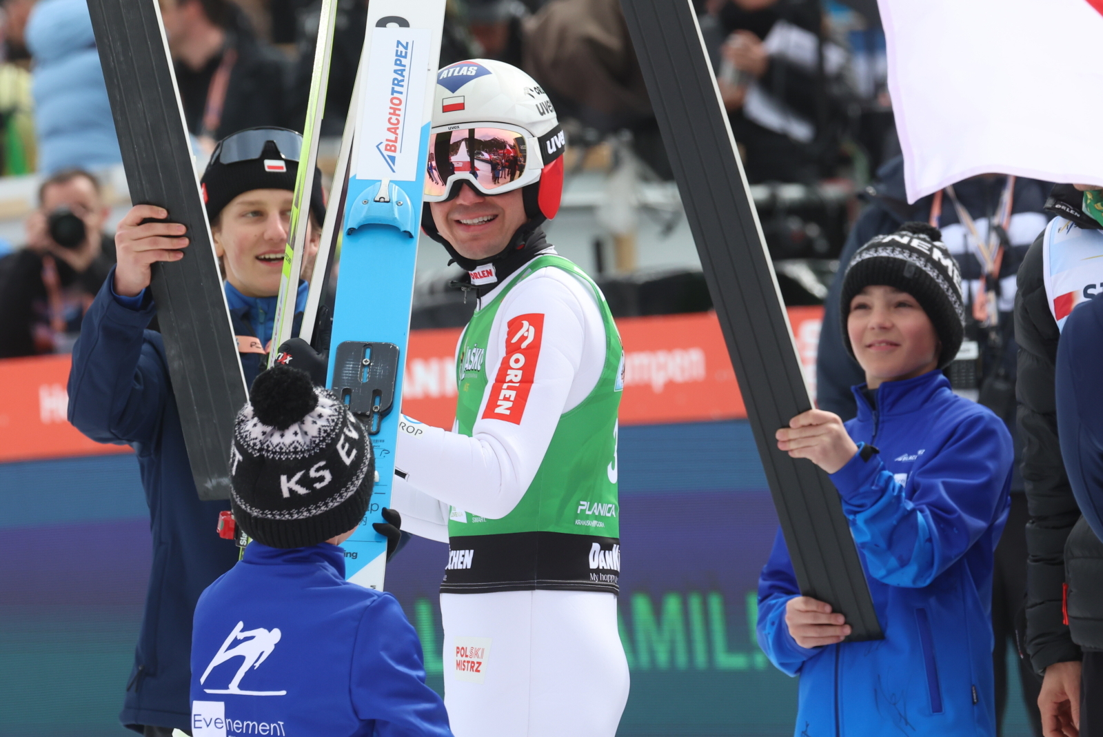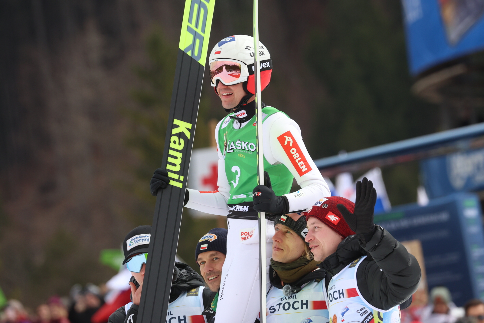 Do skoku w serii finałowej Stocha wystartowała jego żona – Ewa Bilan-Stoch. Pod skocznią młodzi adepci skoków utworzyli dla niego szpaler.