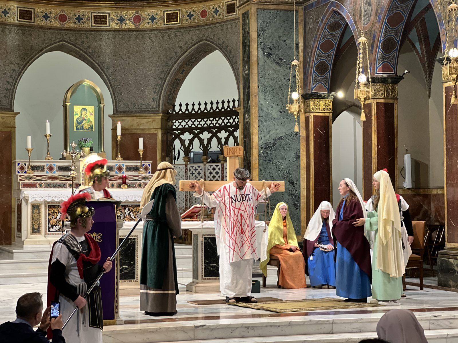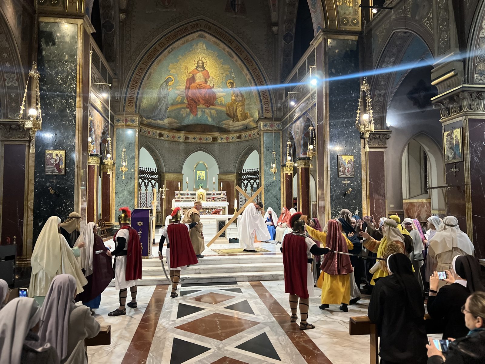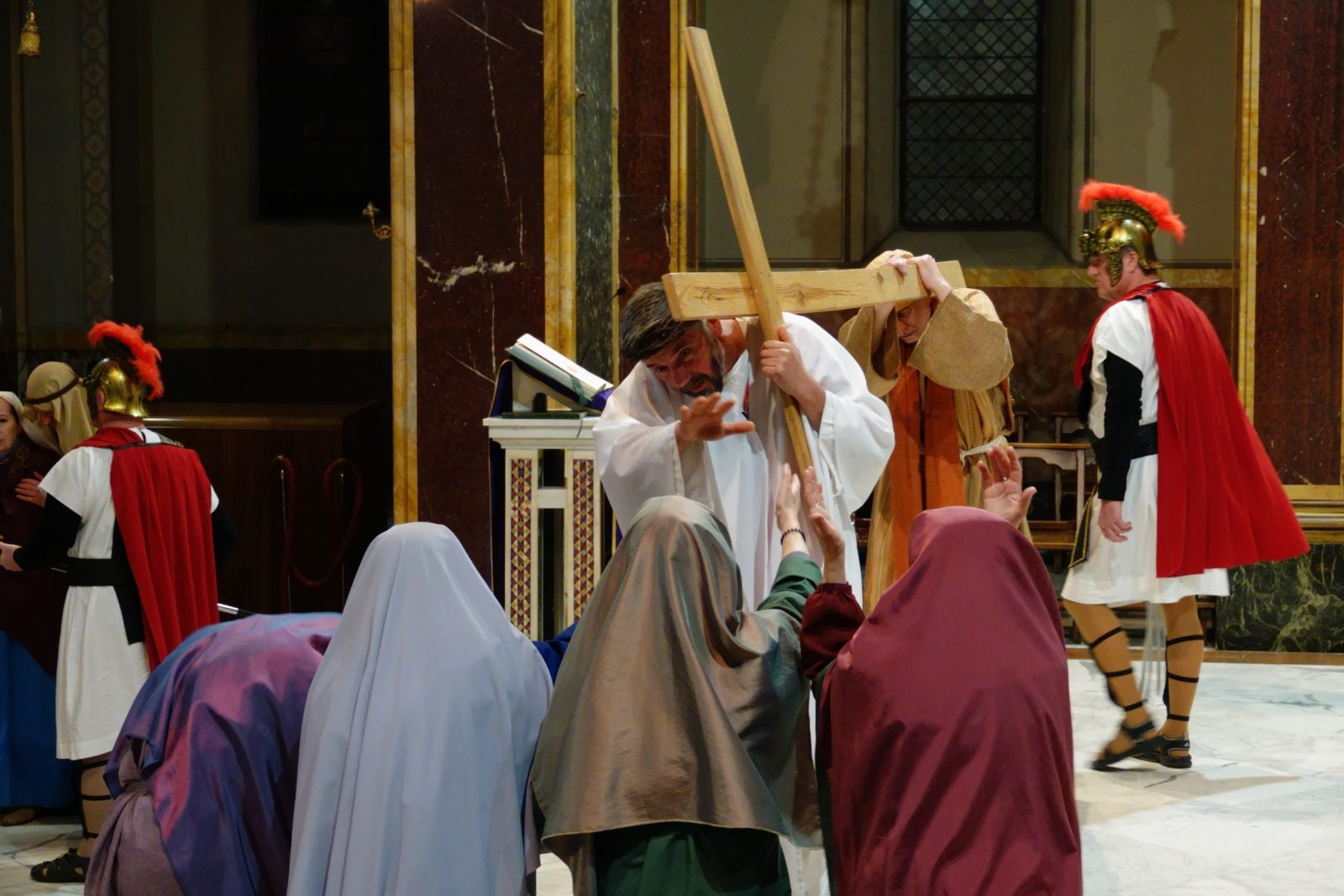 „Kłaniamy się Tobie Panie Jezu Chryste i błogosławimy Ciebie, żeś przez krzyż i mękę swoją świat odkupić raczył” – kilkadziesiąt osób zebranych w kościele św. Alfonsa de’ Liguori na rzymskim Eskwilinie modliło się we wtorkowy wieczór, ze wzrokiem skupionym na grupie aktorów w kolorowych strojach. Inscenizacja Drogi Krzyżowej poprzez zmysły może jeszcze bardziej służyć pobudzeniu wiary – tak uważają pielgrzymi z Tarnowskich Gór, którzy w Rzymie przedstawili inscenizację Drogi Krzyżowej.