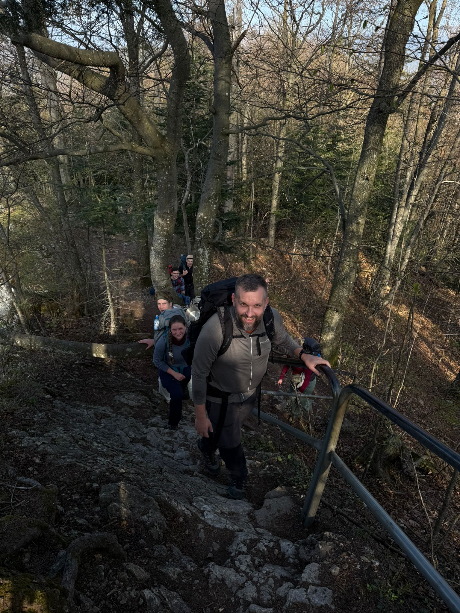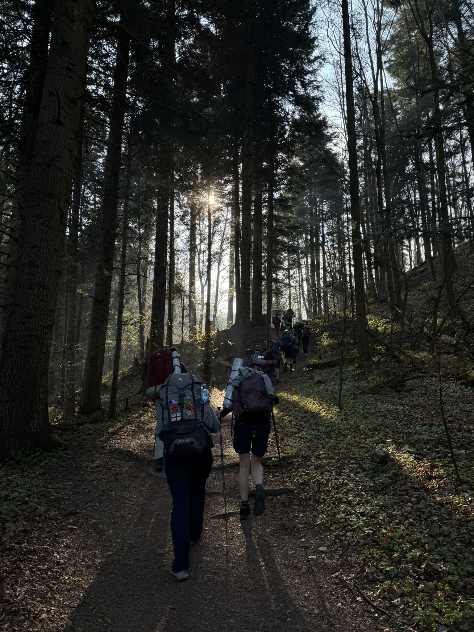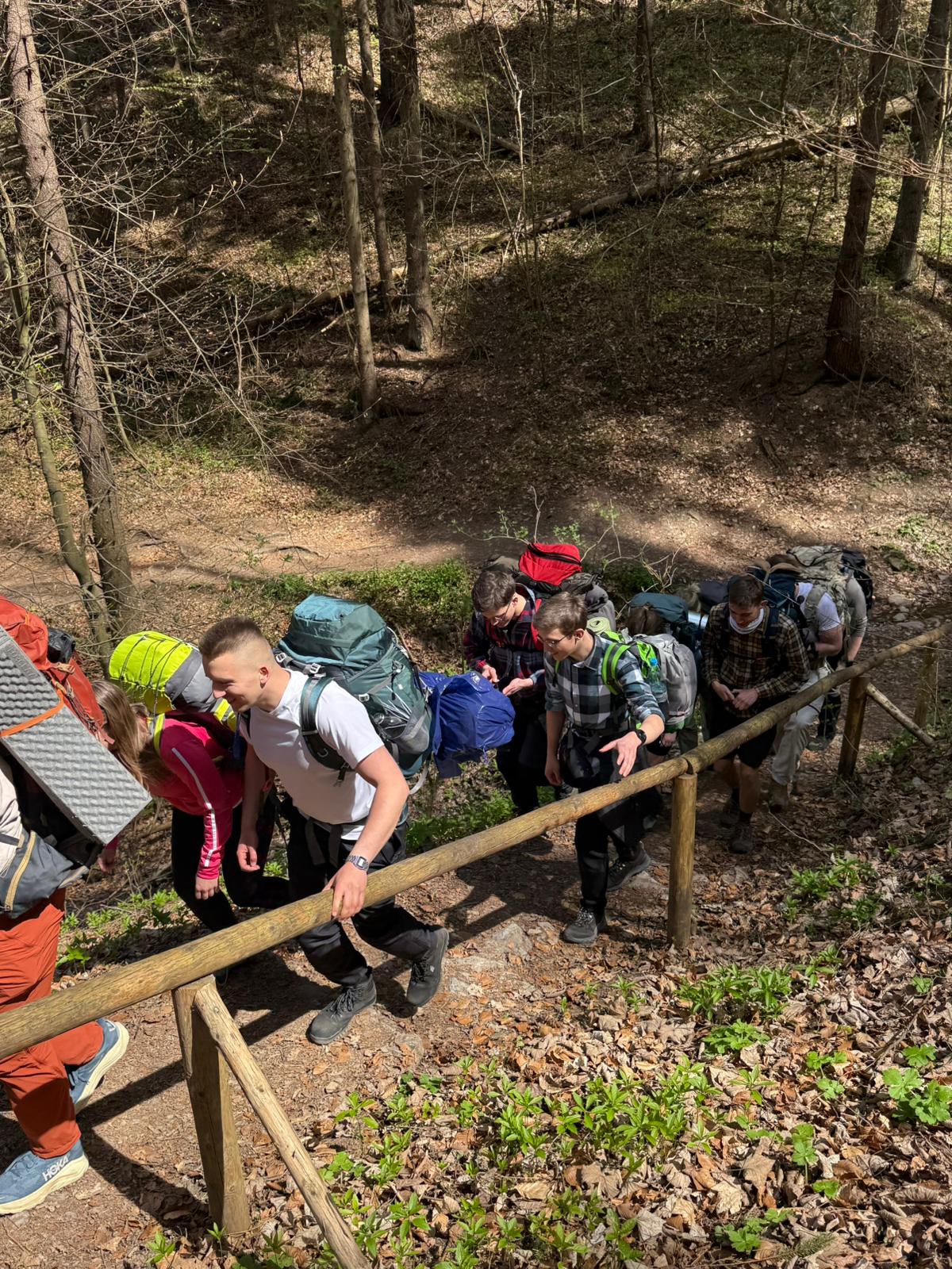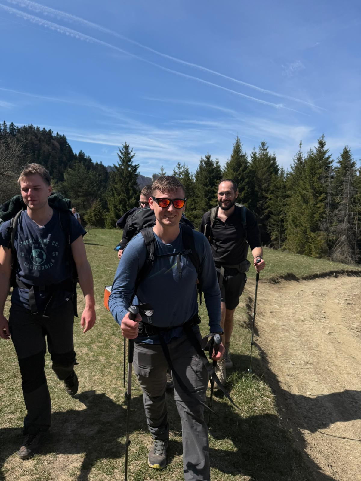 Rano, po Mszy św. o 6:30 w miejscowym kościele, ruszyliśmy na szlak Pienin w kierunku Sokolicy. Mijane skałki oraz wierzchołki były doskonałym przygotowaniem do planowanej wyprawy. Dobra pogoda oraz towarzyszący nam Ultra Trail Marathon (a więc i duża liczba turystów na szlakach) nadały wędrówce ciekawą otoczkę.