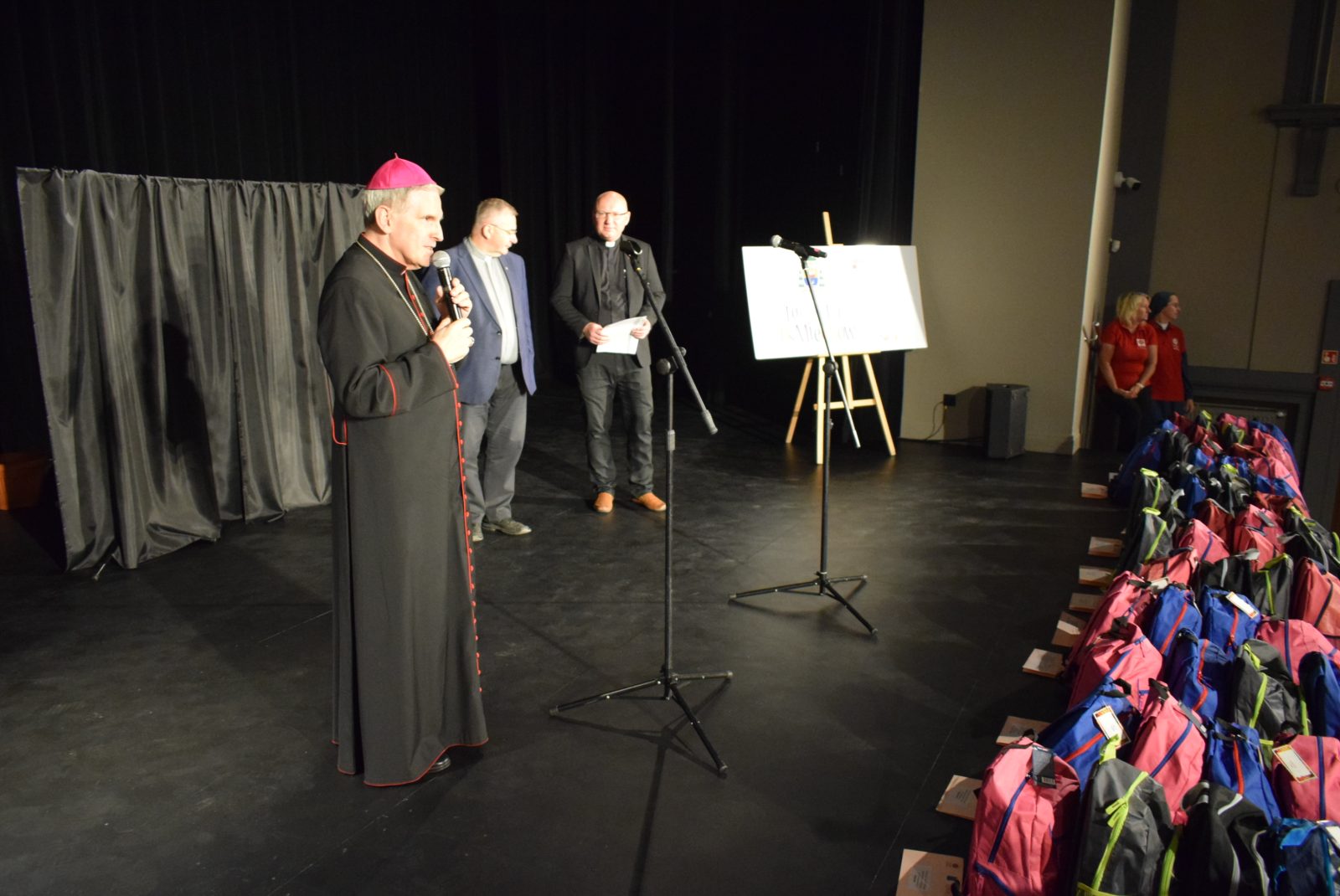 – W tych plecakach znajduje się prawie wszystko, czego potrzebujecie w szkole, a razem z plecakami będzie wam towarzyszyła nasza miłość i modlitwa. W ten sposób będziemy sobie stale bliscy. Starajcie się być jednocześnie dobrzy dla innych osób, wtedy ten krąg dobroci zostanie poszerzony – mówił biskup.