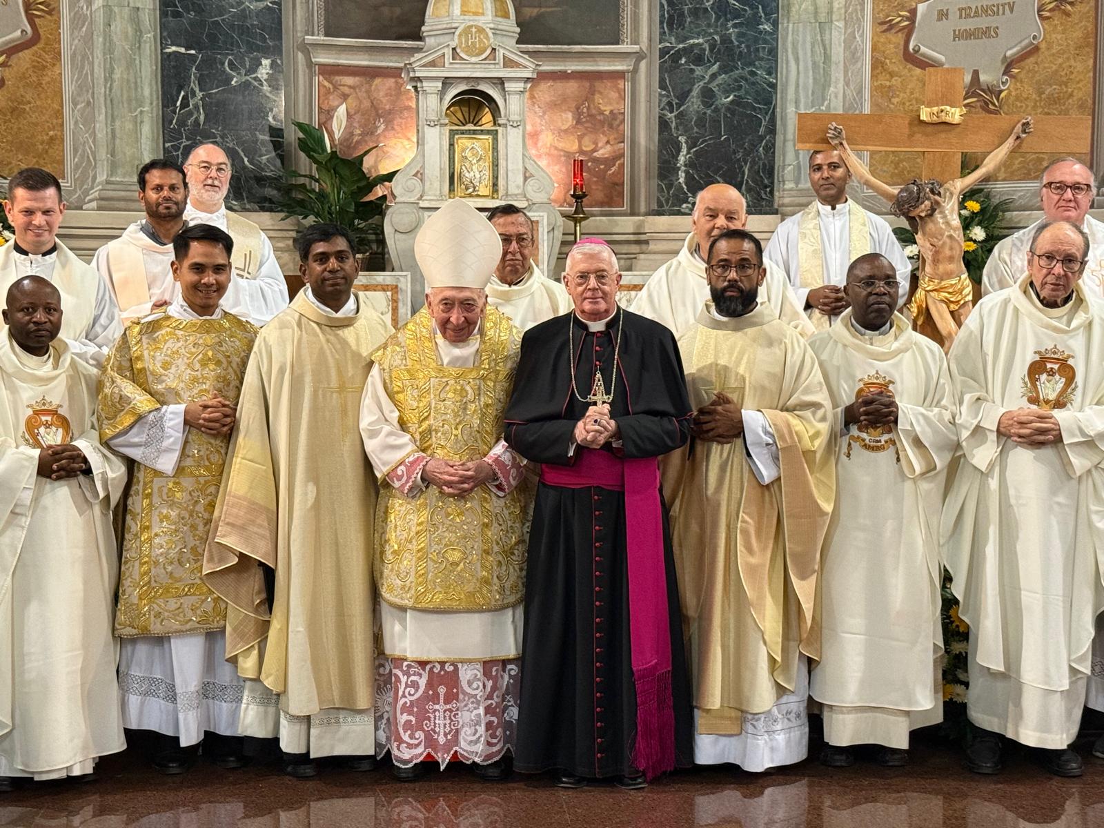 Kard. Angelo Acerbi przewodniczył Mszy świętej. W homilii wyznał, że w tej celebracji „łączą się różne powody głębokiej osobistej i wspólnotowej radości dla wszystkich obecnych”. Obejmując kościół dedykowany Aniołom Stróżom w dniu swych imienin, kardynał przekazał wiernym”: „Otrzymałem życzenia imieninowe od Ojca Świętego Leona XIV. Dziękując mu, poinformowałem go o tej celebracji i zapewniłem, że poproszę uczestników, aby zjednoczyli się z moją modlitwą, by Święci Aniołowie wspierali i umacniali Papieża w jego posłudze Piotrowej”.