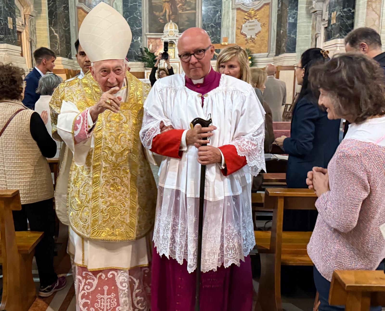O. Joby Emmanuel, proboszcz parafii Świętych Aniołów Stróżów w Rzymie, powitał kardynała i wszystkich obecnych na uroczystości objęcia kościoła. „Dziś obchodzimy także niezwykły dar: jego 100 lat i 9 dni życia” – podkreślił proboszcz, dziękując kard. Acerbiemu za to, że przekazuje „pogodę ducha, przemawiającą do serca”.