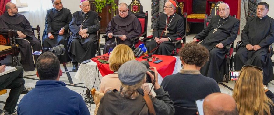 Łaciński Patriarcha Jerozolimy kard. Pierbattista Pizzaballa i kustosz Ziemi Świętej o. Francesco Ielpo podczas konferencji prasowej w Jerozolimie poinformowali o