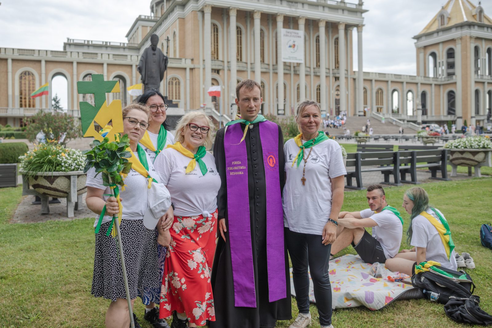 Pielgrzymi z Bydgoszczy również zaznaczyli swoją obecność w widoczny i radosny sposób – machając kolorowymi flagami i posługą muzyczną podczas Mszy, niosąc modlitwę śpiewem. Wśród pielgrzymów była Ewa Wiczeńska z Łochowa, nauczycielka i wieloletnia pątniczka, która podzieliła się swoim doświadczeniem: – To mój ósmy raz na pielgrzymce. Trzy razy jako dziewczyna, teraz, gdy skończyłam 52 lata, idę już trzeci raz jako babcia. Dwa razy byłam też w Wilnie. Licheń nie jest przystankiem – to miejsce szczególnej obecności Maryi. Duchowe, pełne modlitwy, gdzie czuje się niesamowitą opiekę i radość, jakby człowiek był w raju – mówi.